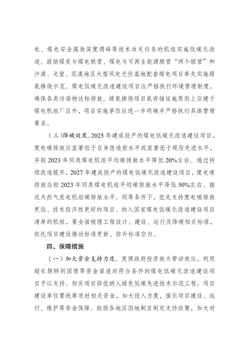 (二)機(jī)組條件。鼓勵(lì)承擔(dān)煤電工業(yè)熱電解耦及靈活協(xié)同發(fā)電、煤電安全高效深度調(diào)峰等技術(shù)攻關(guān)任務(wù)的機(jī)組實(shí)施低碳化改造。鼓勵(lì)煤炭與煤電聯(lián)營(yíng)、煤電與可再生能源聯(lián)營(yíng)“兩個(gè)聯(lián)營(yíng)”和沙漠、戈壁、荒漠地區(qū)大型風(fēng)電光伏基地配套煤電項(xiàng)目率先實(shí)施綠氨摻燒示范。煤電低碳化改造建設(shè)項(xiàng)目應(yīng)嚴(yán)格執(zhí)行環(huán)境管理制度,確保各類污染物達(dá)標(biāo)排放。綠氨摻燒項(xiàng)目氨存儲(chǔ)設(shè)施原則上應(yīng)建于煤電機(jī)組廠區(qū)外,項(xiàng)目實(shí)施單位應(yīng)進(jìn)一步明確并嚴(yán)格執(zhí)行具體管理要求。